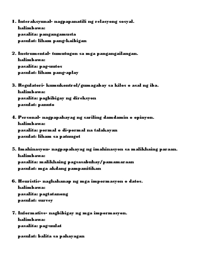 Uri ng pagsulat na naglalayong magrekomenda ng iba pang sanggunian hinggil sa isang paksa. Pang-impormatibo -- pagbibigay ng impormasyon 7 Tungkulin ng Wika Explorations in the functions of Language 13. Ang epekto na ibinigay sa mga tuntunin ng tunog na lumalabas sa tamang oras ay perpekto.
